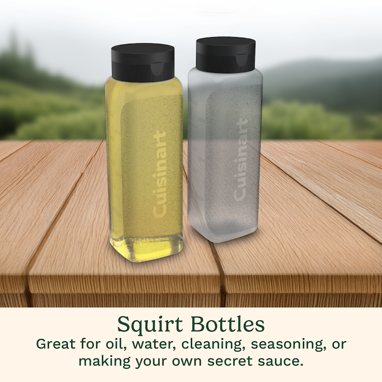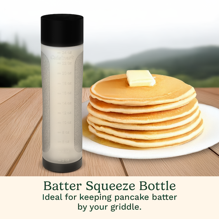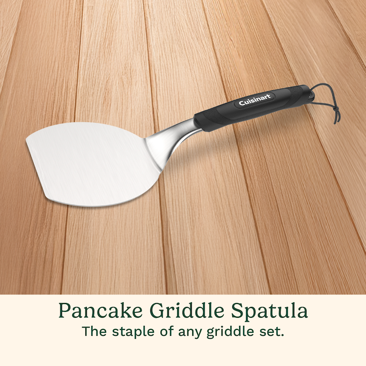 Take your griddle cooking to the next level with the Cuisinart 10-Piece Griddle Tool Set with everything you need for perfect steaks, pancakes, burgers, breakfast sandwiches, and more. This versatile set includes a 5.5” pancake spatula, cast iron griddle press, 24 fl. oz. batter squeeze bottle, two 12 fl. oz. squirt bottles, 8 fl. oz. seasoning shaker, and four non-stick silicone egg rings for flawless griddle creations. From breakfast to burgers, this set has the essential tools to enhance your griddle experience.