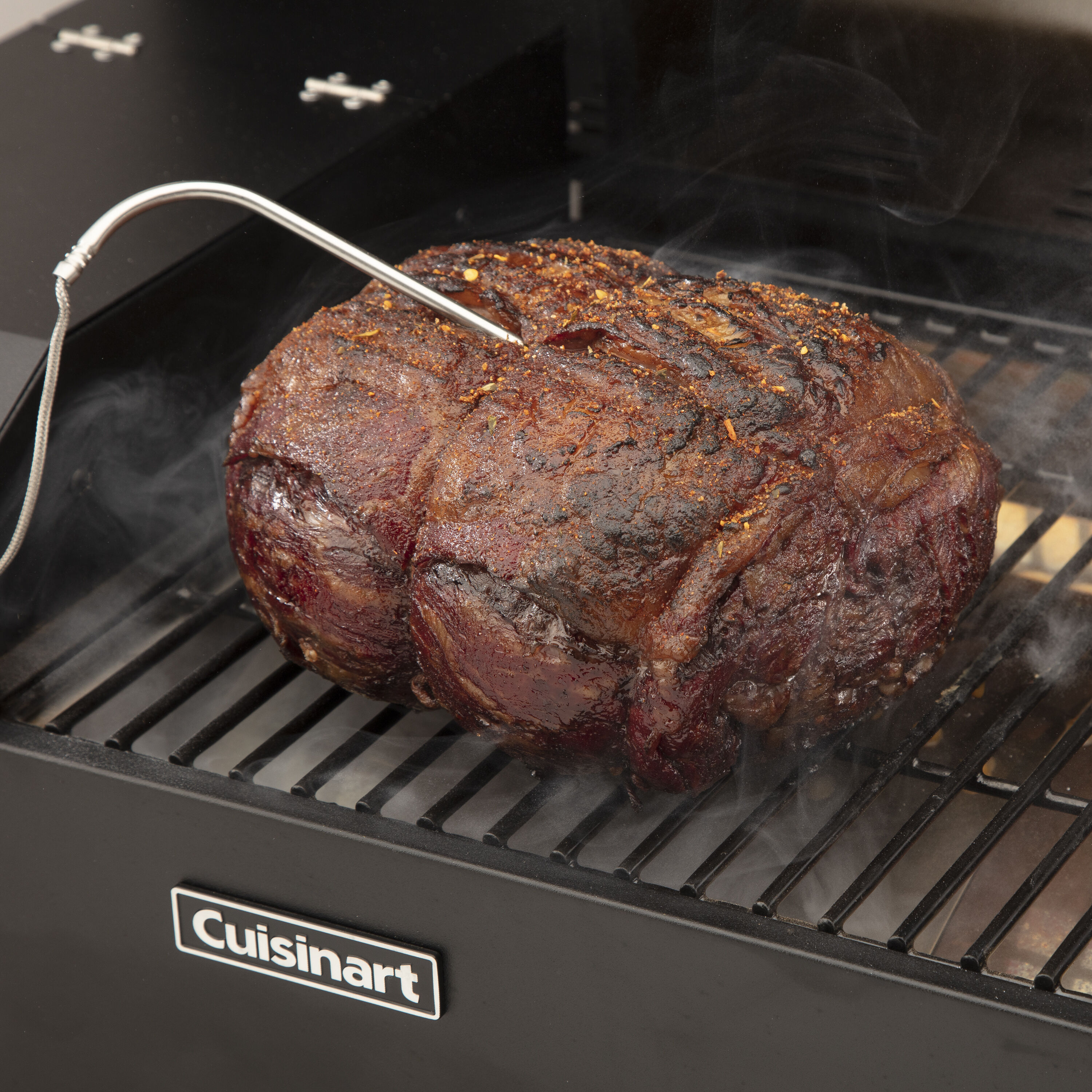 Take your outdoor cooking to the next level with the Cuisinart Outdoors Portable Wood Pellet Grill and Smoker. Compact yet powerful, this versatile pellet smoker offers 256 sq. in. of cooking space (188 sq. in. main rack + 68 sq. in. warming rack) and features an integrated sear zone for direct or indirect grilling. Whether you’re smoking, barbecuing, grilling, roasting, or even baking, this 8-in-1 pellet grill has you covered with precise temperature control ranging from 180°F to 500°F. The Precision Pellet Delivery System automatically adds wood pellets to maintain the perfect temperature, making it easier than ever to get that authentic wood-fired flavor. With a 4 lb. pellet hopper, you can enjoy hours of uninterrupted smoking. Plus, the included meat probe lets you monitor food temperatures effortlessly. Ideal for backyard gatherings, RV camping trips & tailgating, and more, this portable pellet grill is your go-to for on-the-go grilling with smokey flavor.
