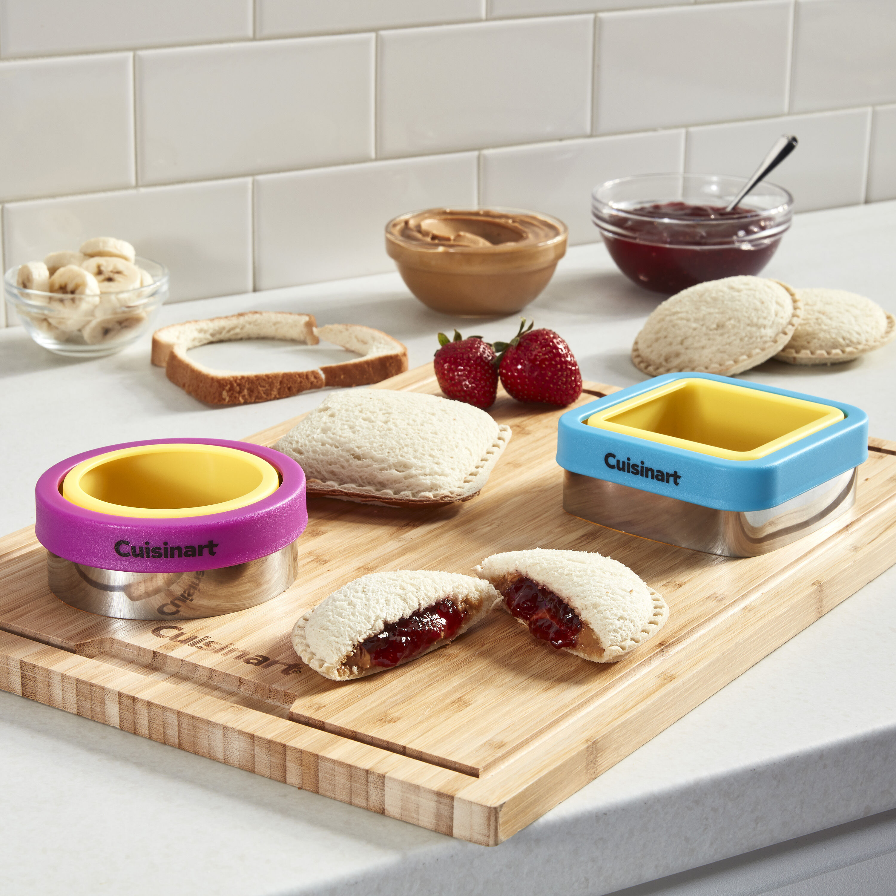 The Cuisinart® 2pc Sandwich Cutter & Sealer Set includes a circular and a square sandwich cutter and sealer. Each shape is set apart by a different color, making it easy to prevent cross-contamination. The stainless steel cutters efficiently trim crusts off sandwiches without excessive waste, while the colorful handles ensure comfortable use. Whether you’re catering to allergies, dietary needs, or just personal preference, these sandwich cutters and sealers allow you to create customized sandwiches. Ideal for busy lunches or quick snacks on the go!